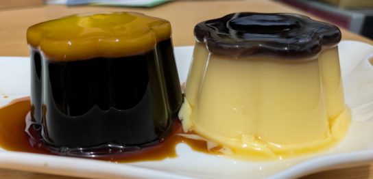 一般的にプリンというと鶏卵でできた薄黄色の部分とカラメルでできたこげ茶色の部分の二層からなっているも